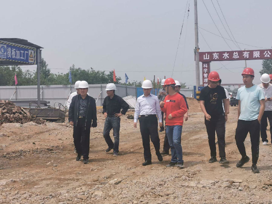 2020年5月15日,山东省水利厅副厅长王祖利一行到我公司承建的枣庄市薛城区蟠龙河匡山头闸工程检查督导工作。枣庄市水务局局长闫维松、枣庄市重点水利建设管理处领导陈敏强、省水利设计院院长高峰、水发设计代建单位负责人李海军、鸿禹工程监理有限公司总监张宗超、山东水总匡山头闸项目负责人孔凡昌等陪同。