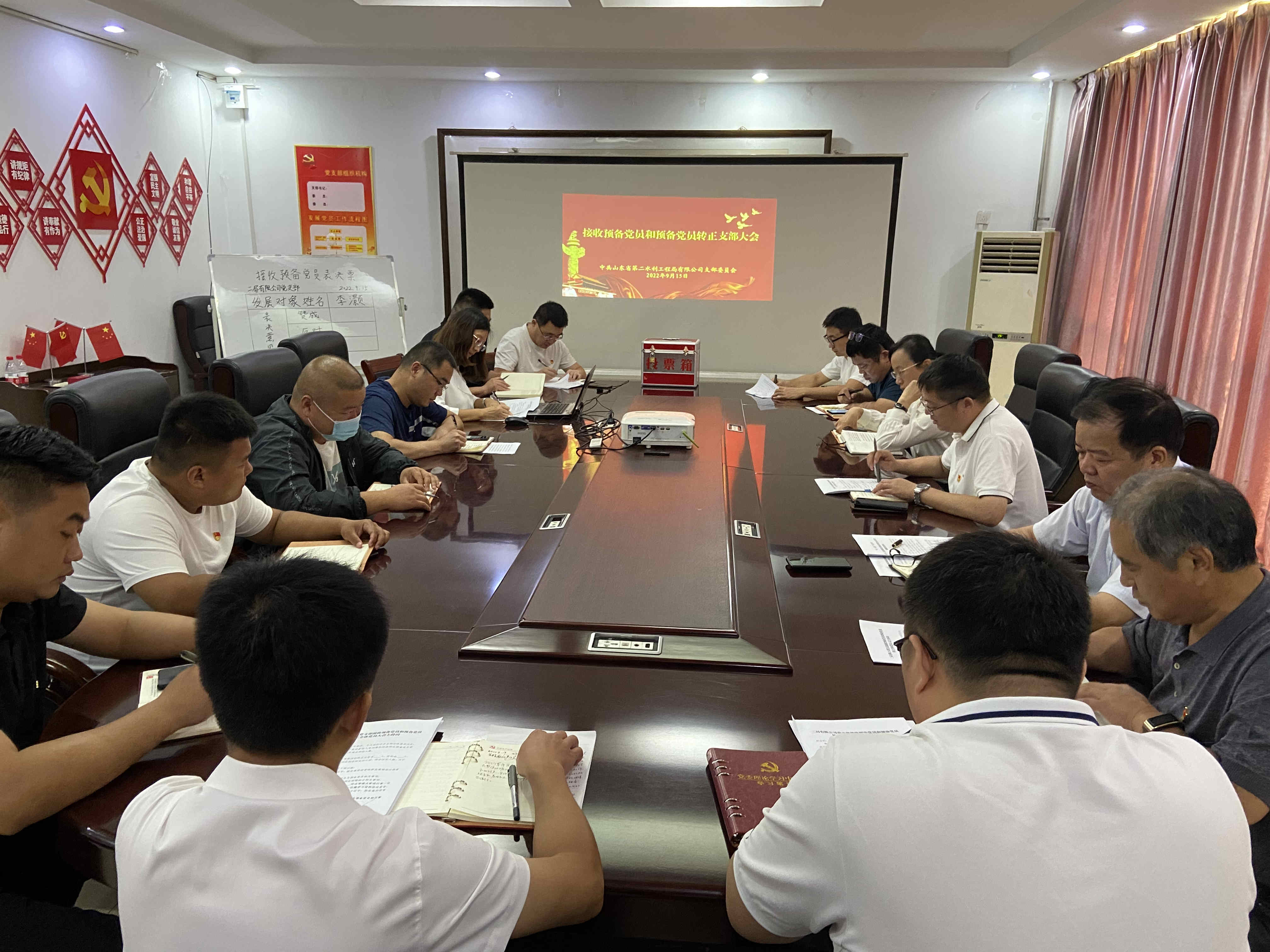 9月15日上午,二局有限公司支部召开党员大会,接收李灏同志为预备党员、刘波同志预备转为正式党员。会议由支部书记王传波同志主持。